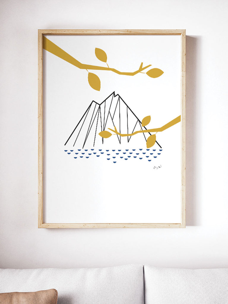 När jag ritade motivet till den grafiska postern Guldgren använde jag programmet Illustrator på min dator. Motivet föreställer ett berg och grenar i svart och ockra. Postern Guldgren passar fint med Balloon, Berget, Blåberget och Blåklocka.